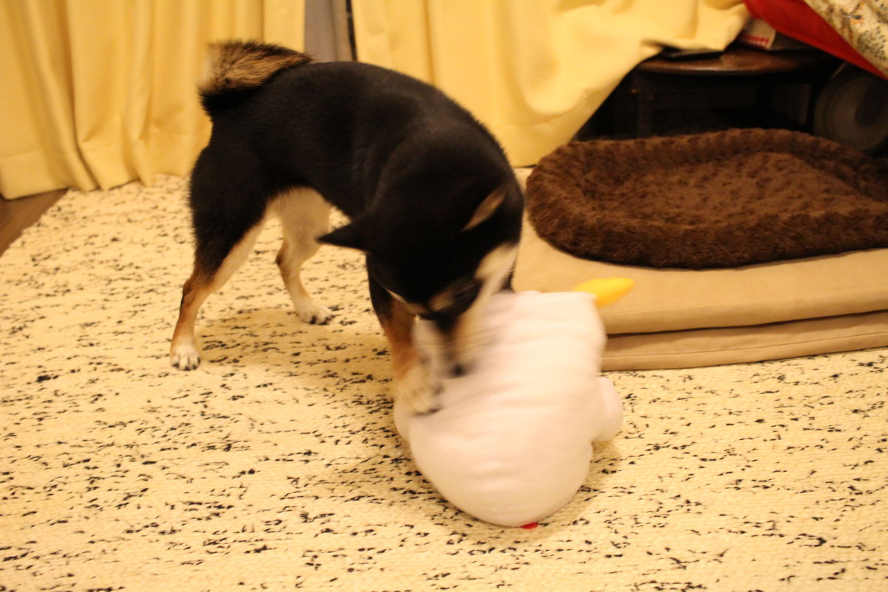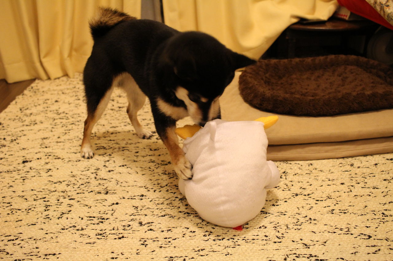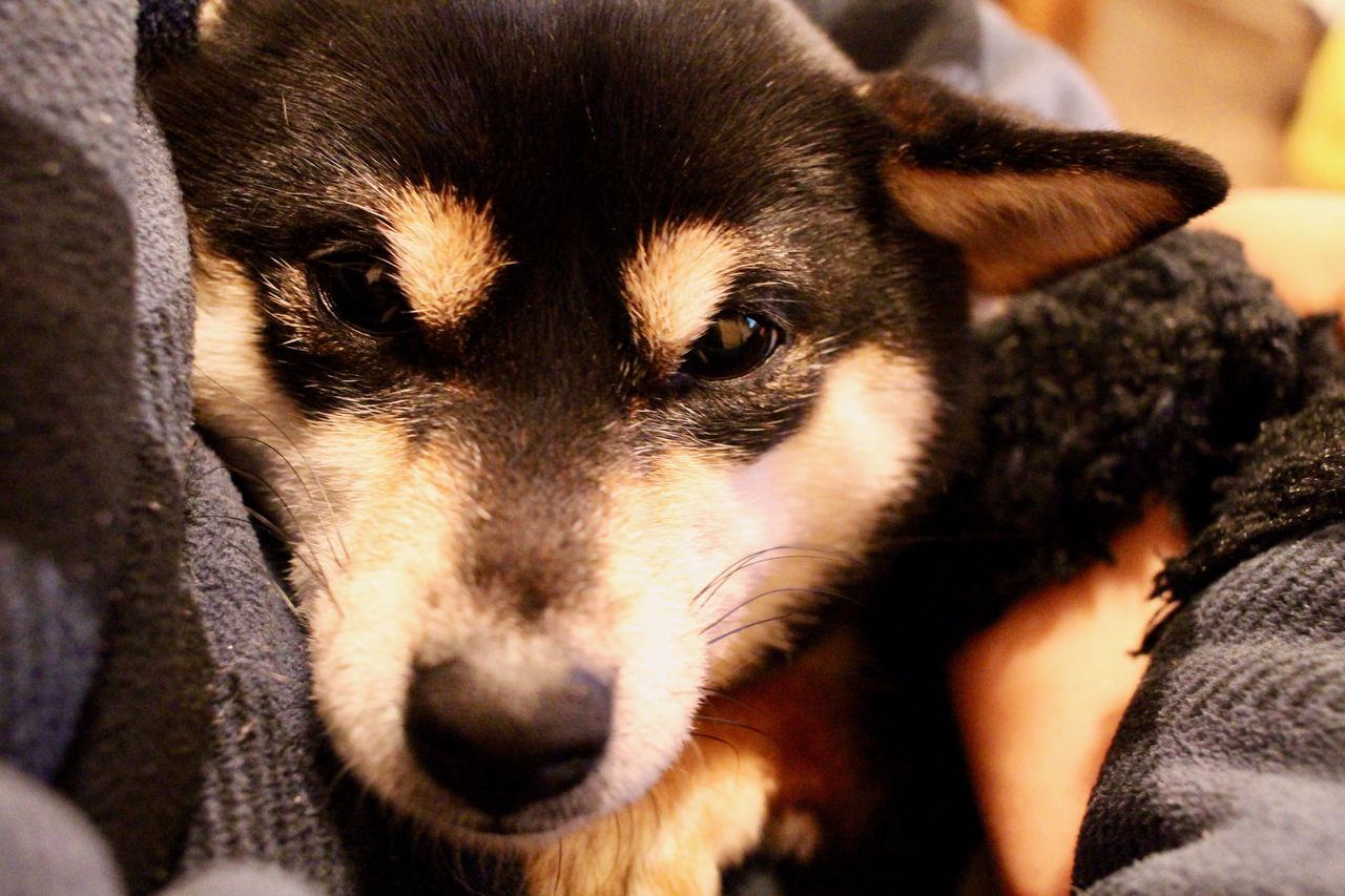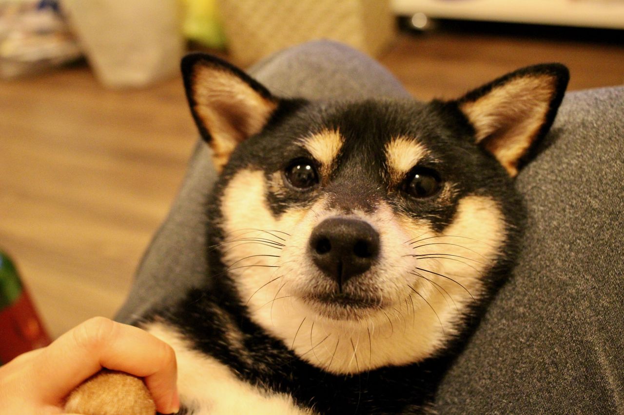 豆柴ジーラの歯磨きを手伝って、