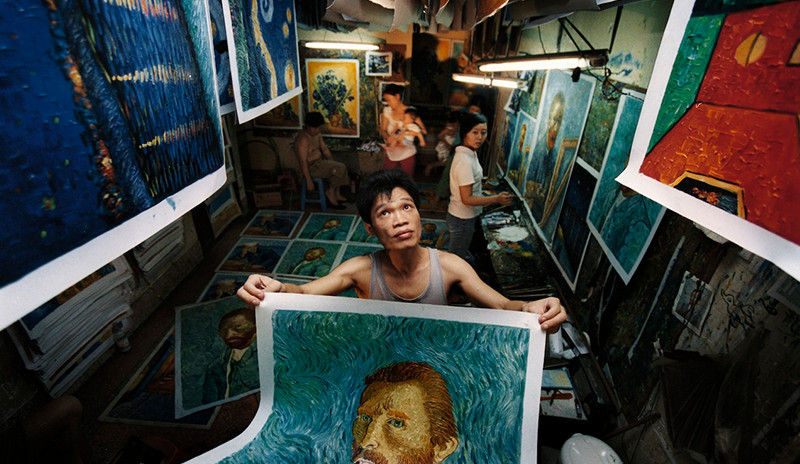 ゴッホの複製画を描く中国人シャオヨン。