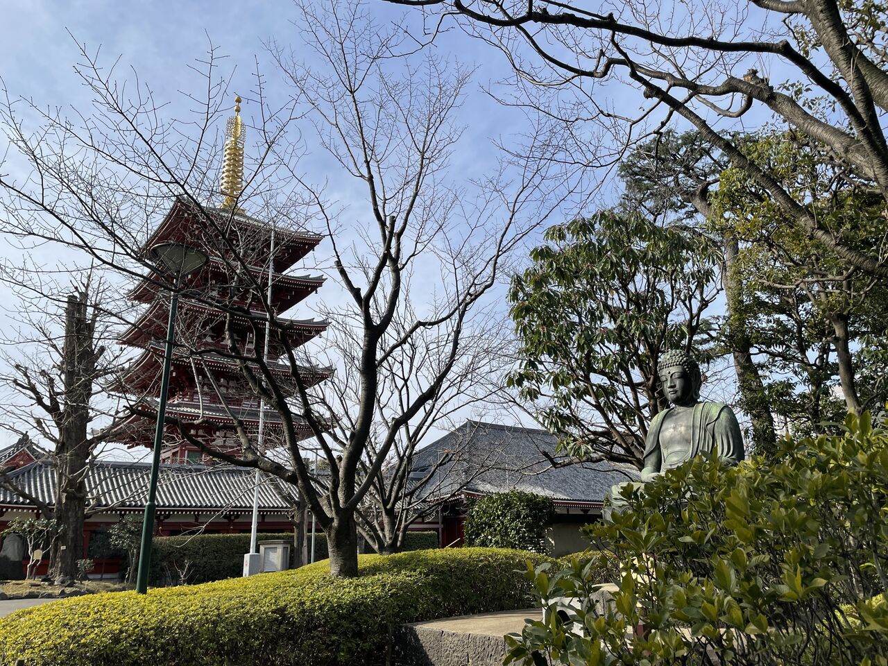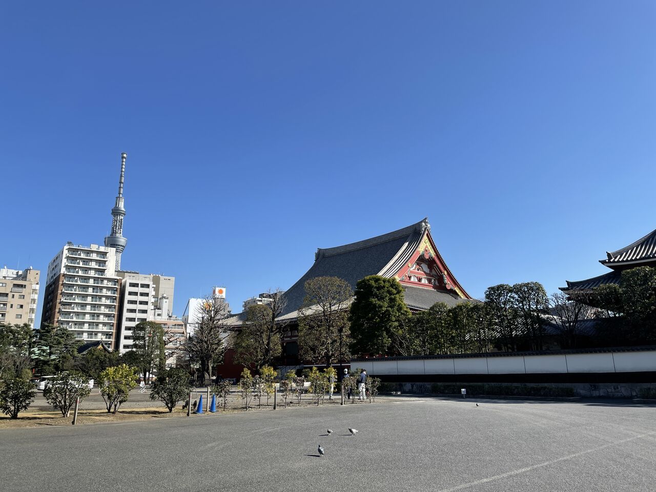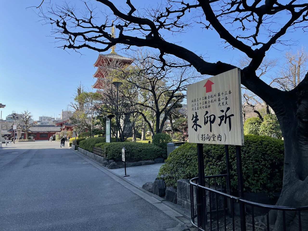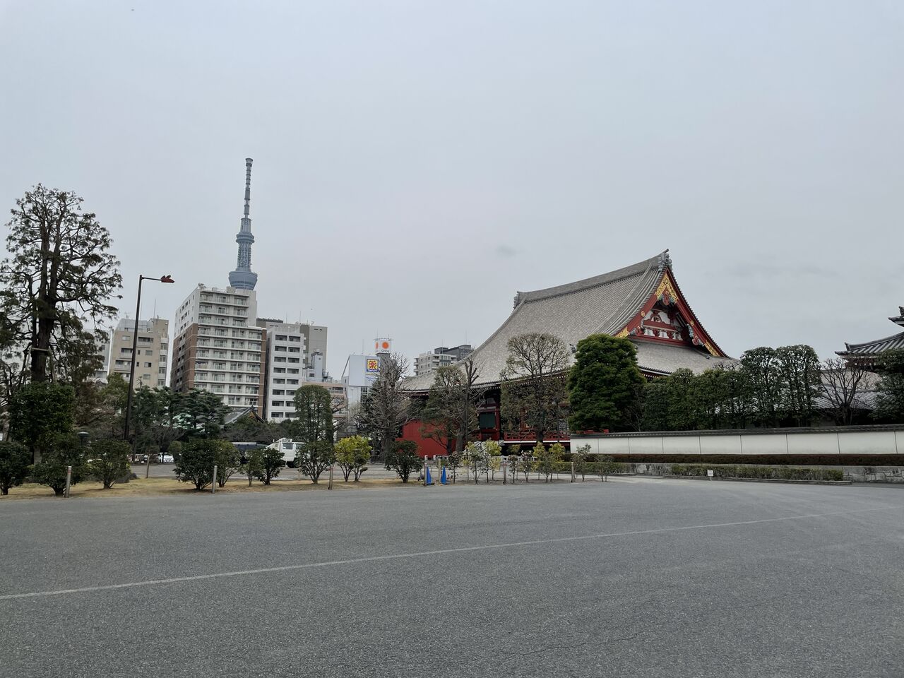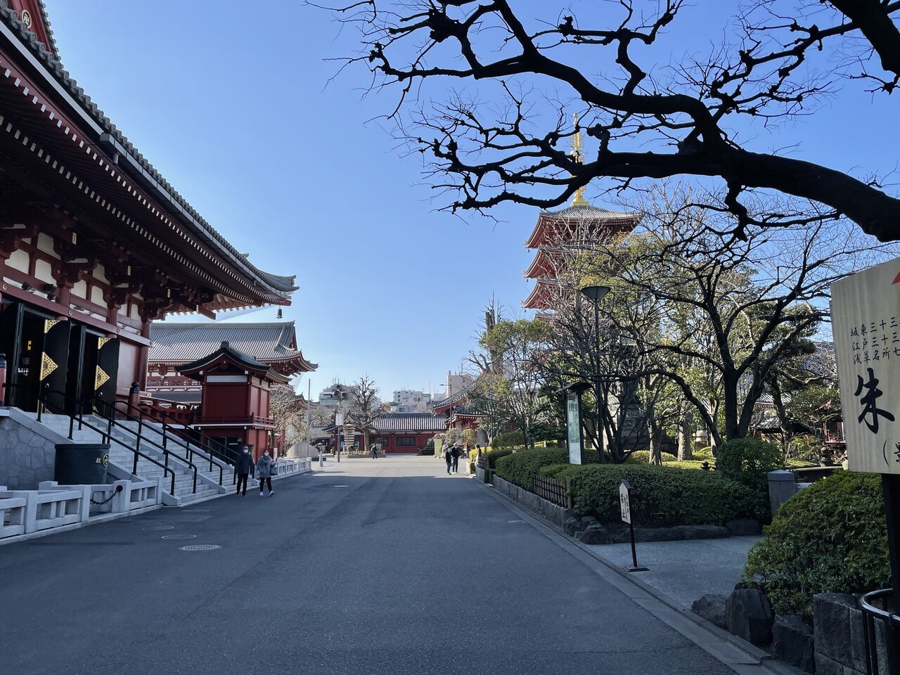 閑散とした浅草寺境内。