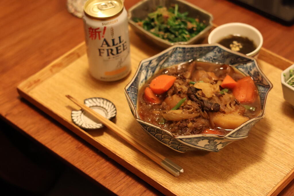 サントリーノンアル「新オールフリー」で乾杯。