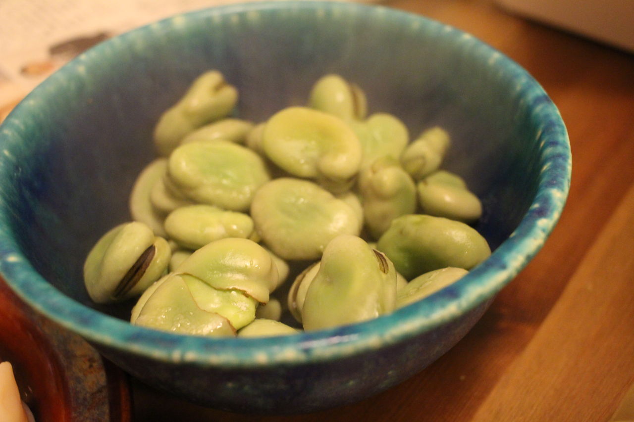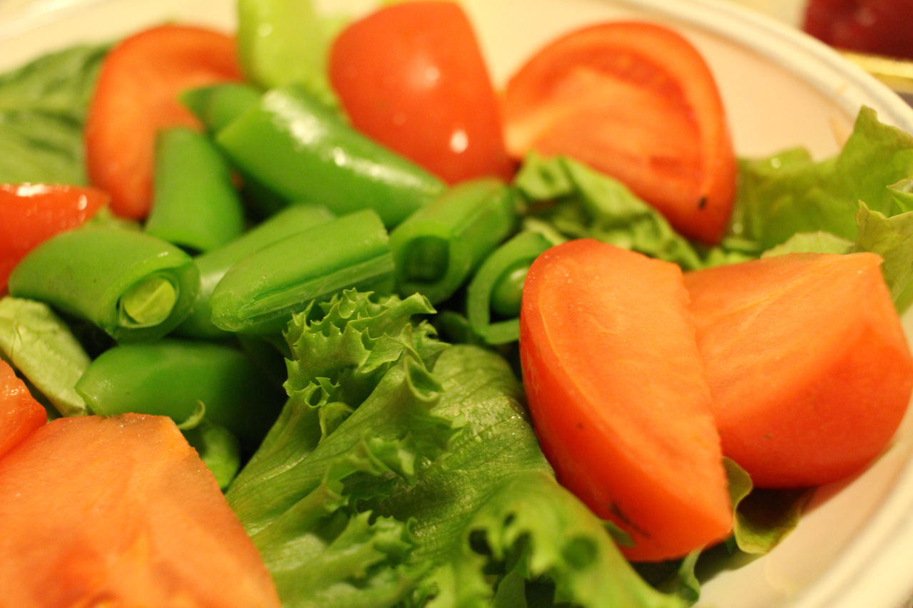 スナップエンドウのトマトサラダ、そら豆を食す。