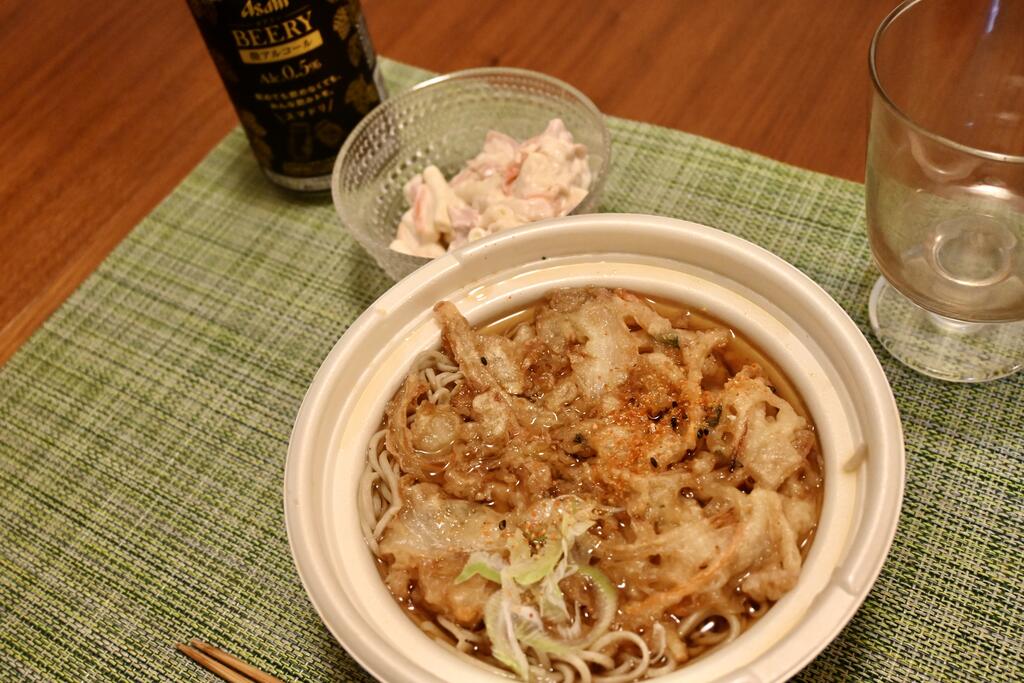 天ぷらそばをチンして食す。