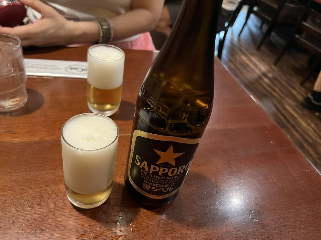 サッポロ黒ラベルの瓶ビール(600円)で乾杯。