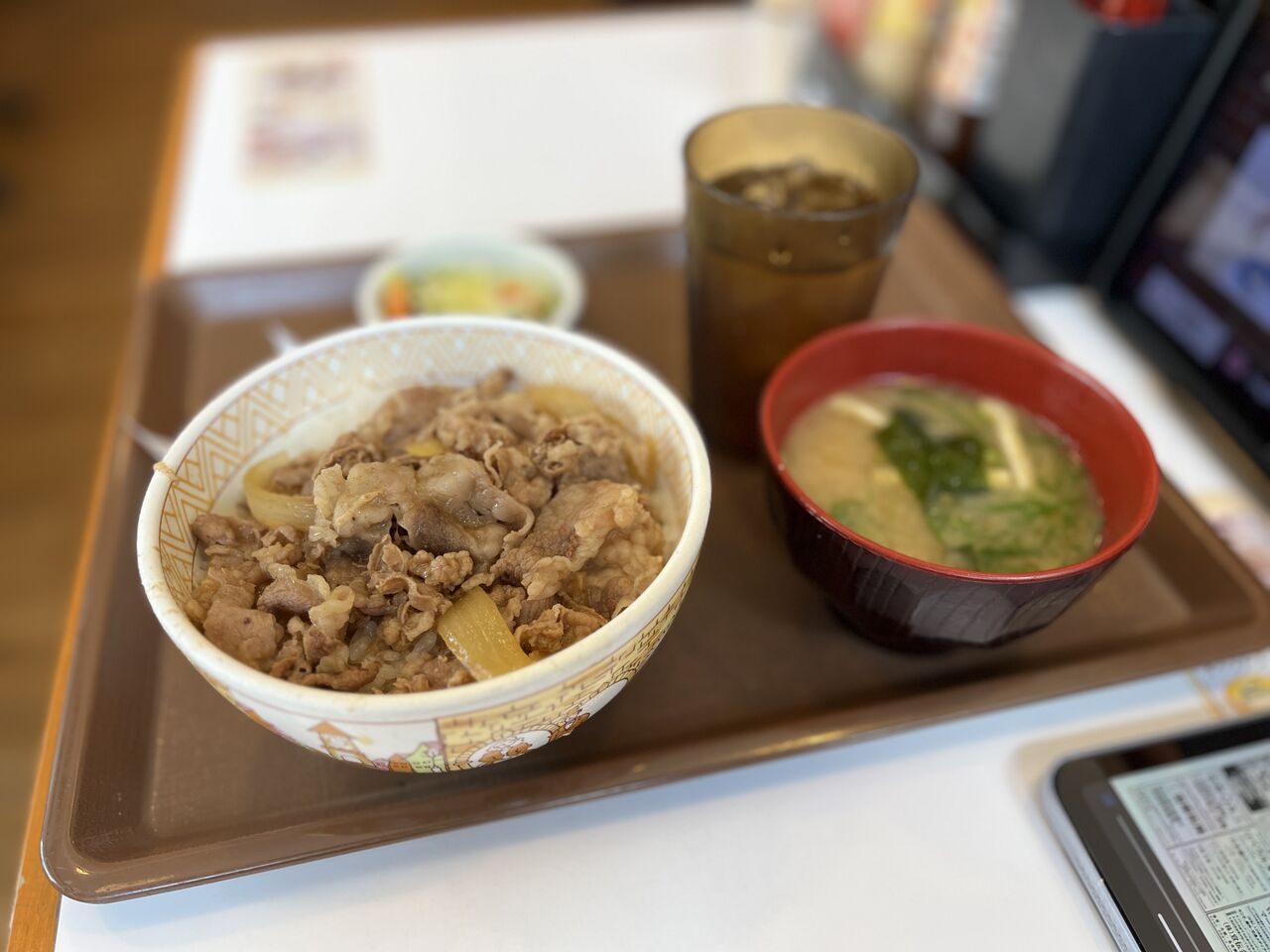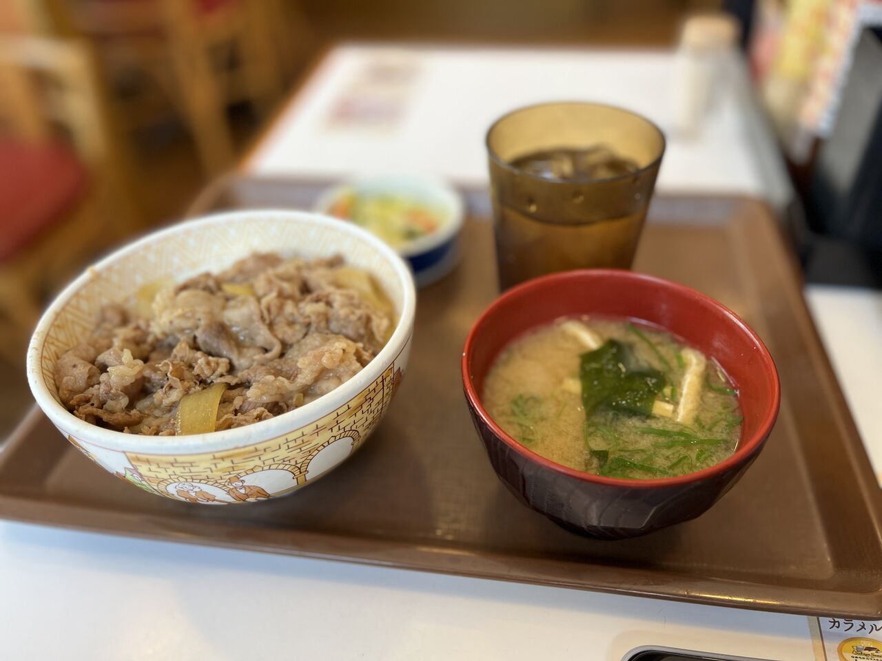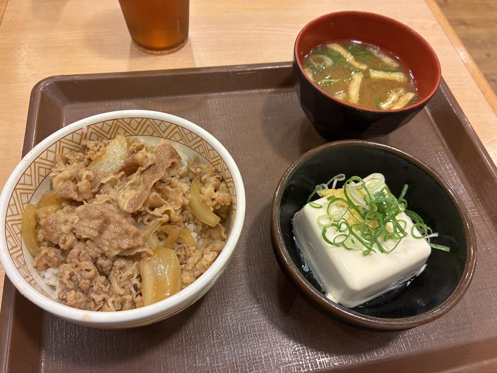 牛丼ミニと冷奴と味噌汁のセットを食す。