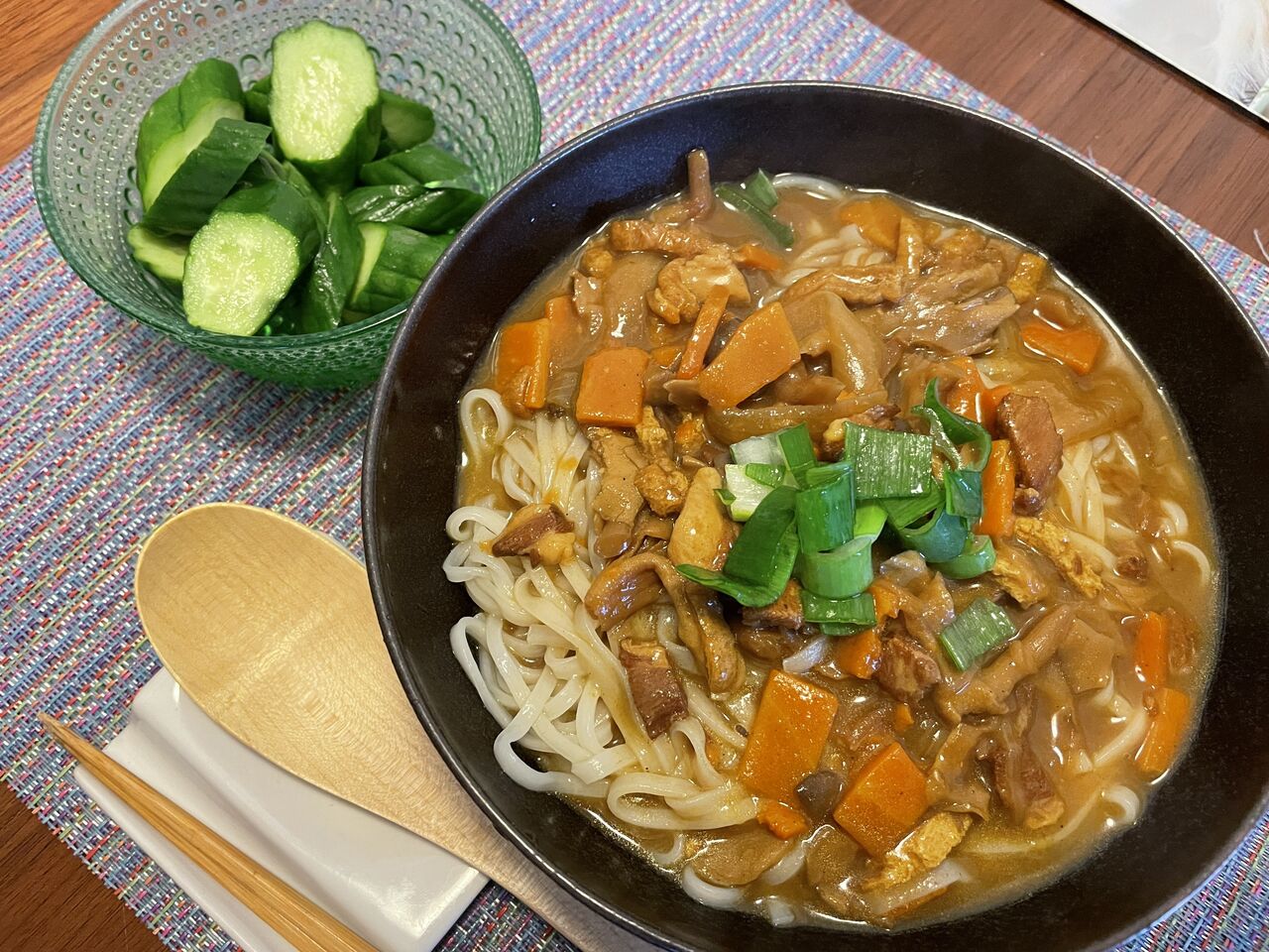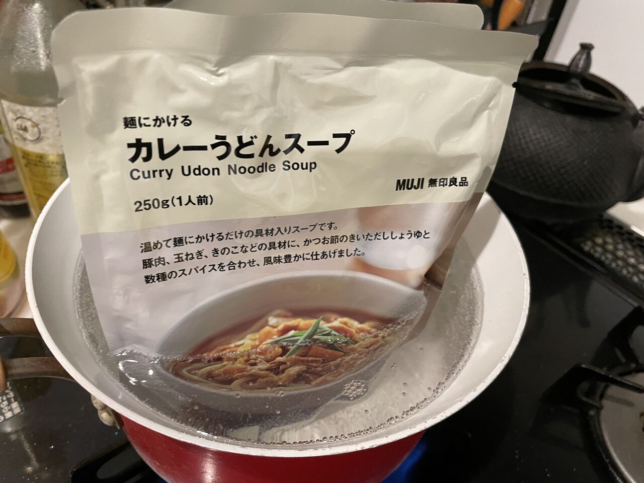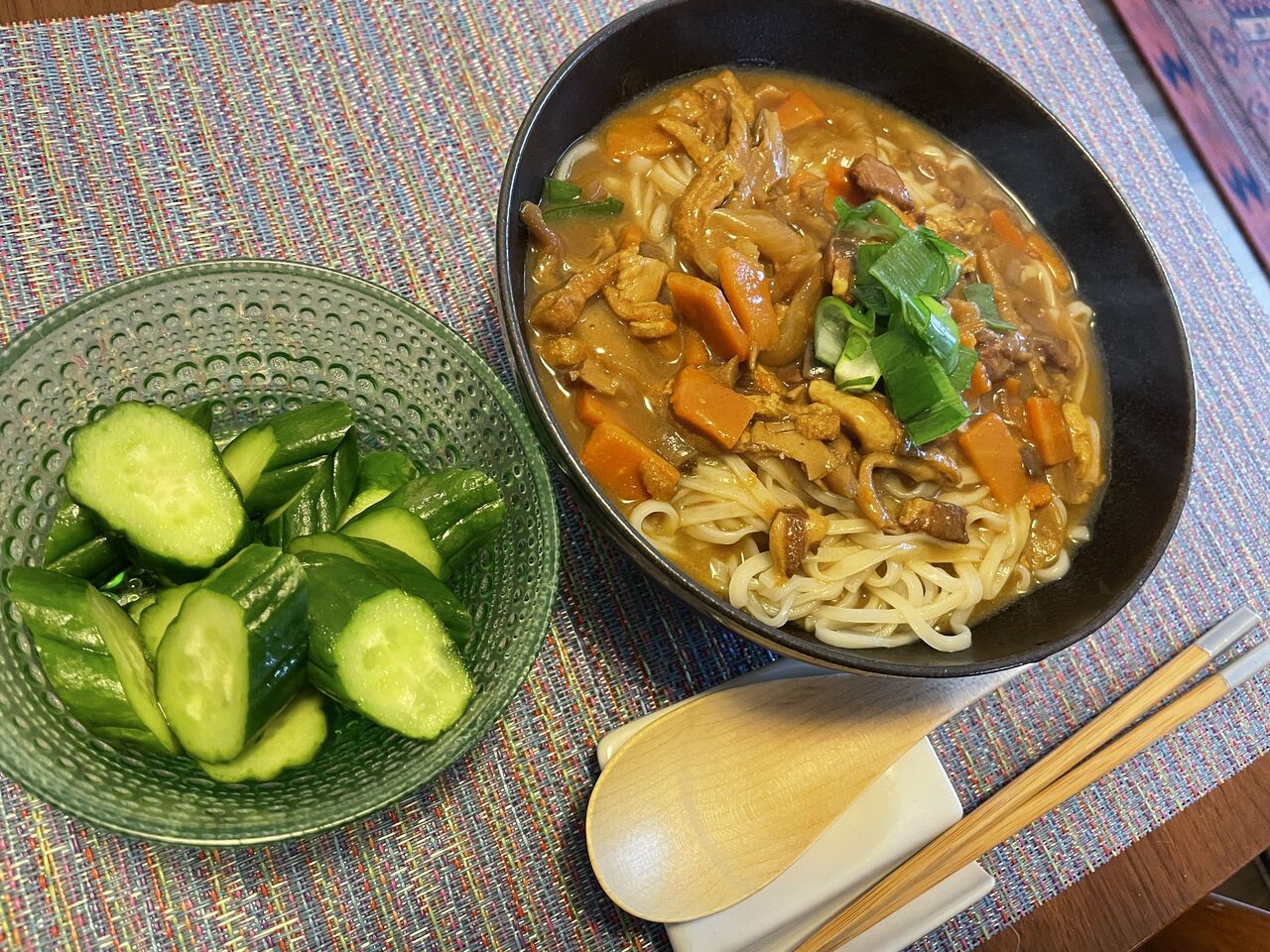 雨の無印カレーうどんとよだれ鶏