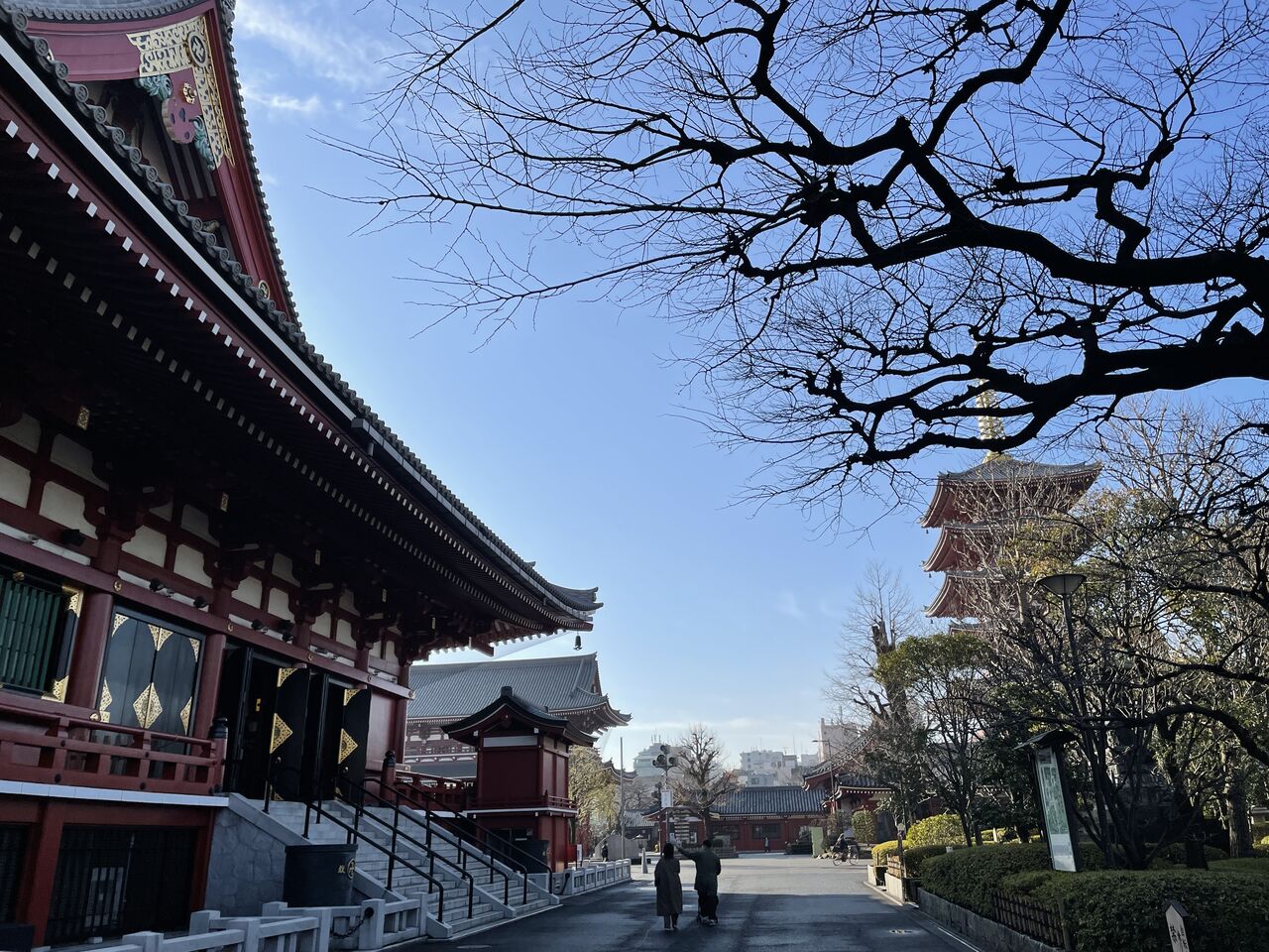 浅草寺境内は流石に人少なし。