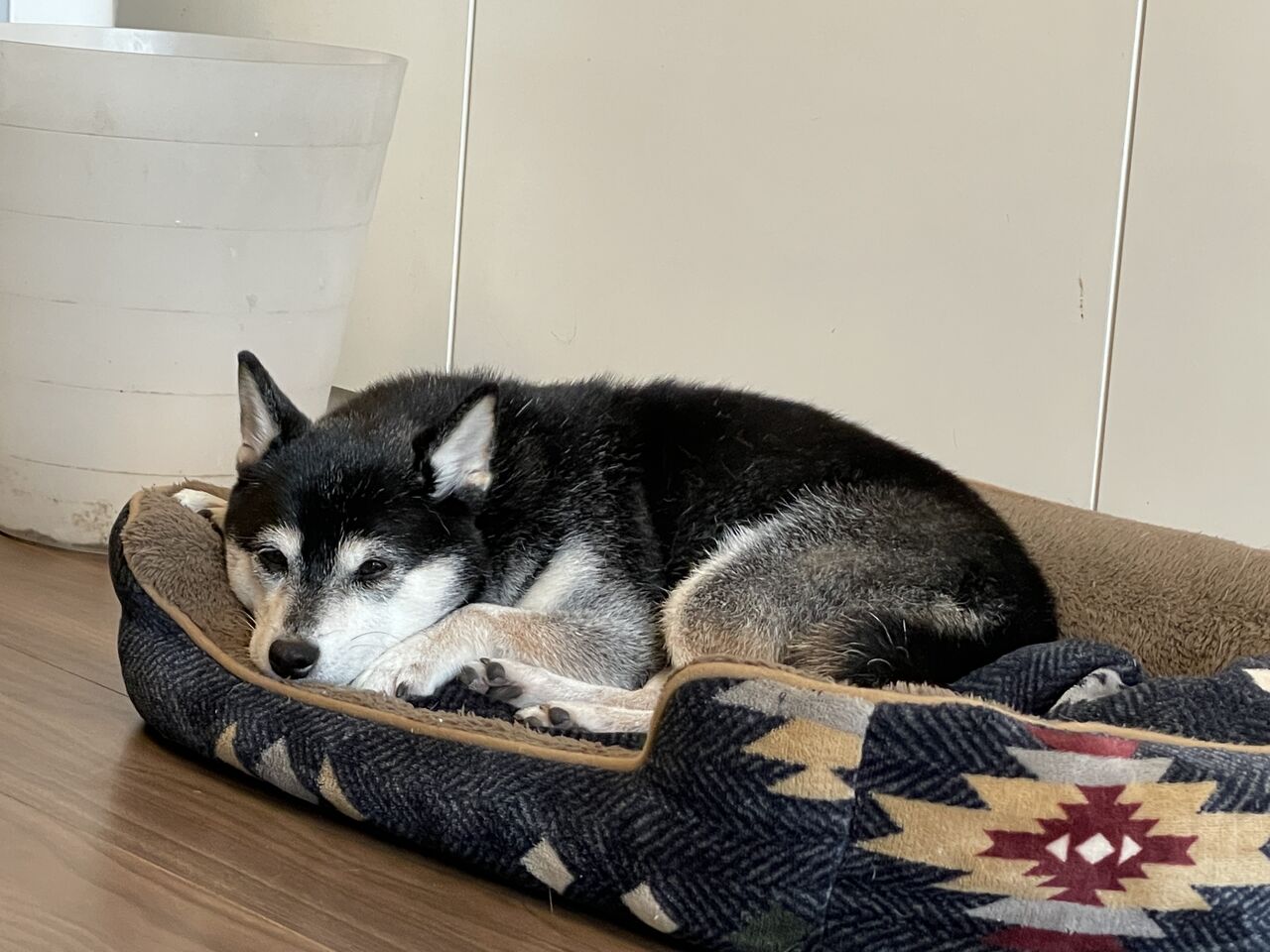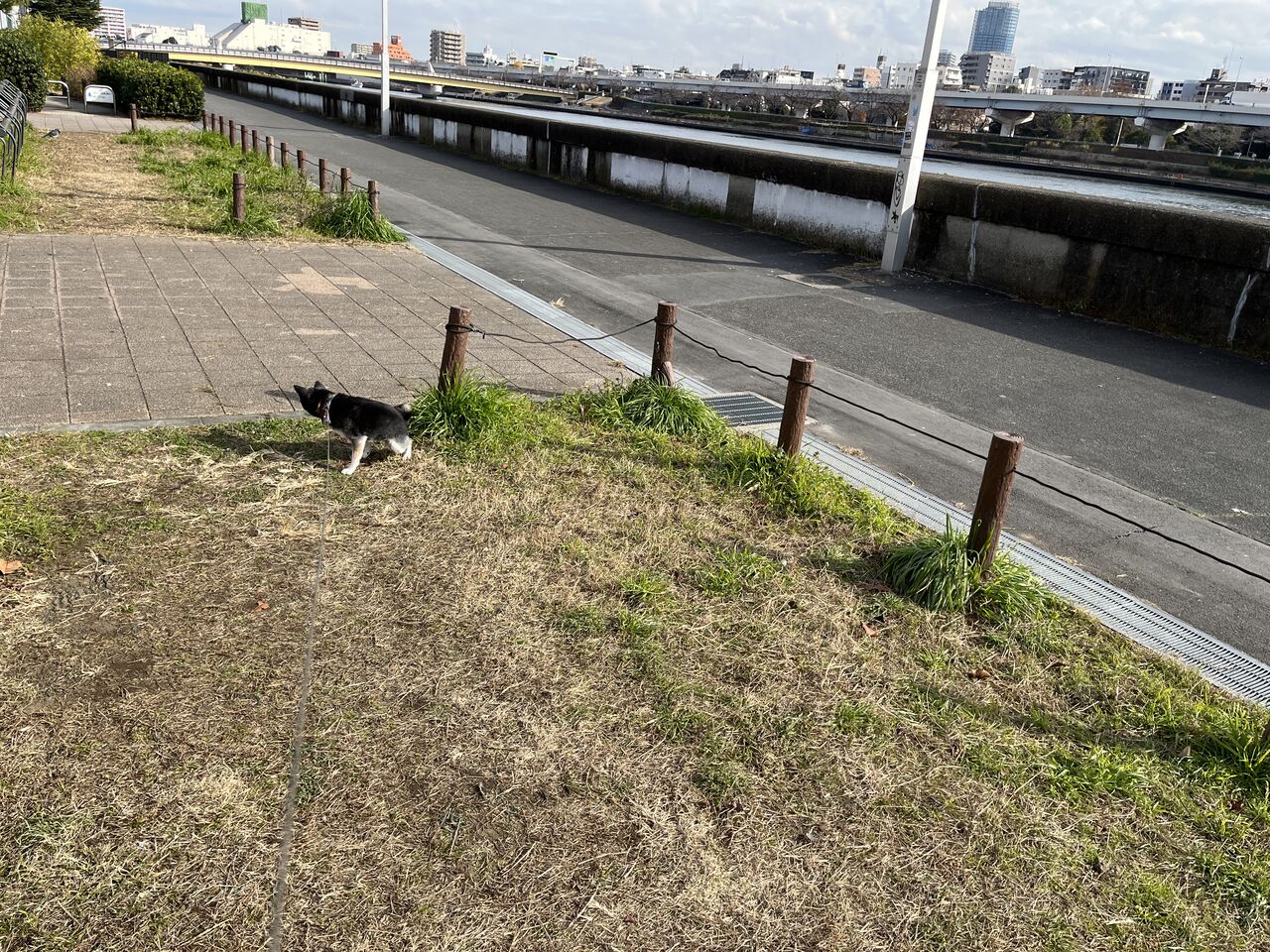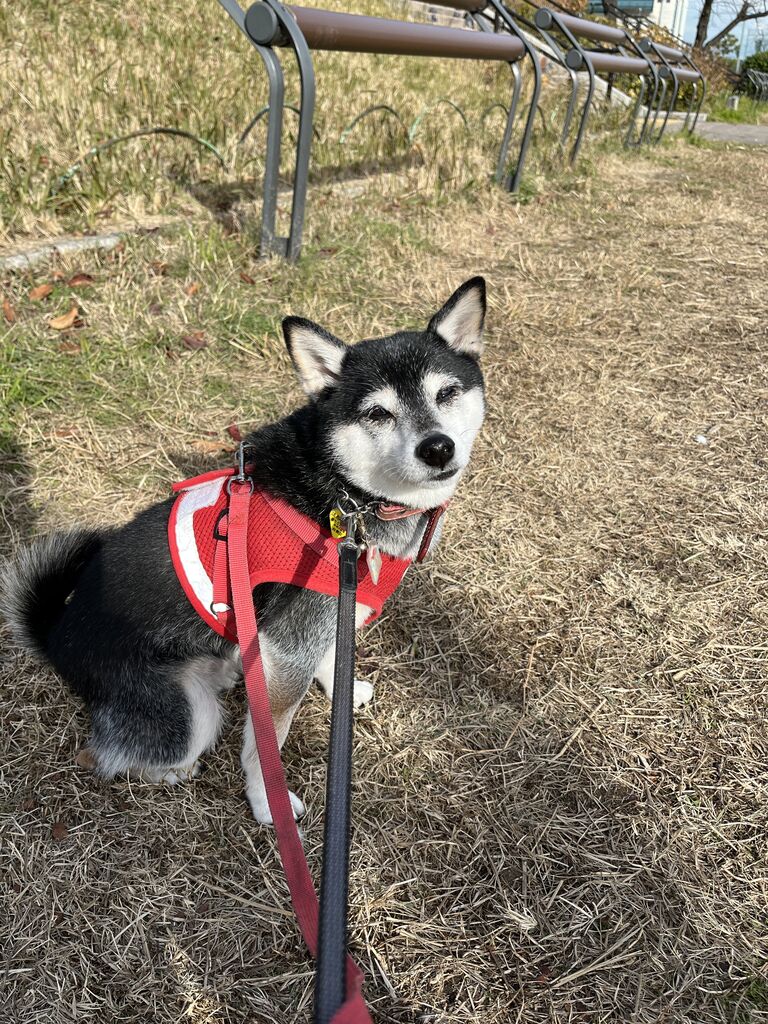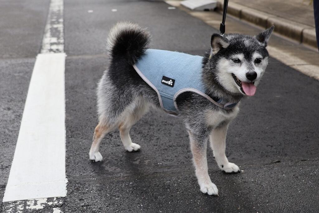 豆柴ジーラの朝散歩は妻に託す。