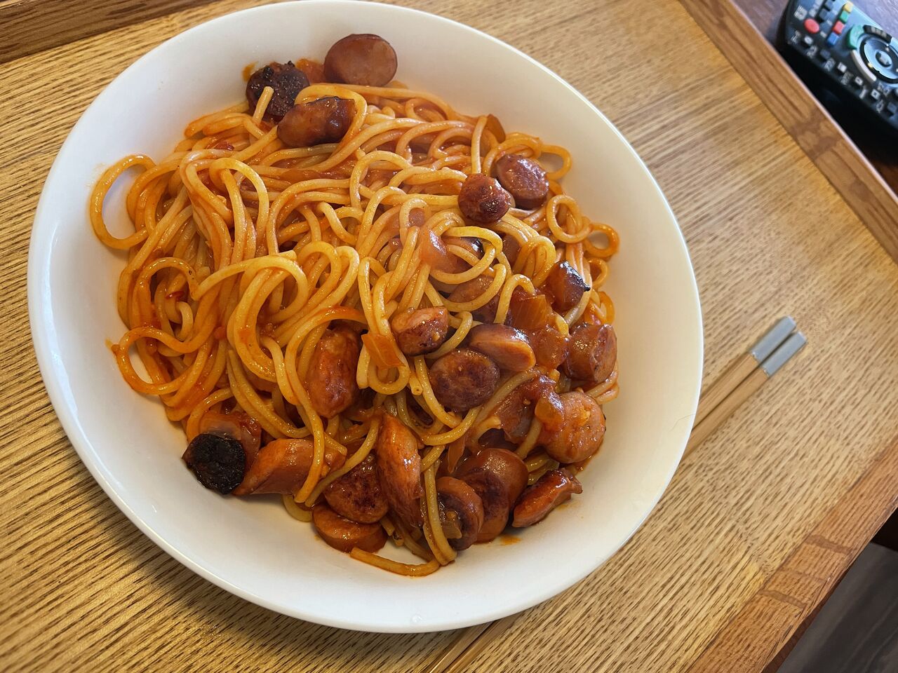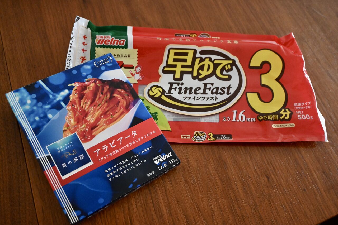 盆送り火のアラビアータと白滝豚肉巻き