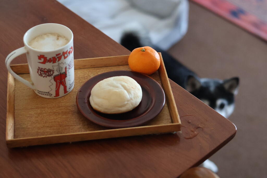 カフェラテ&みかん&チーズパン。