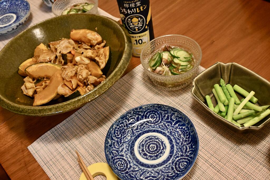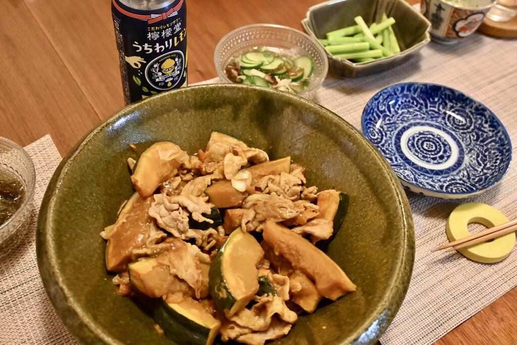 かぼちゃと豚肉の炒め物を食す。