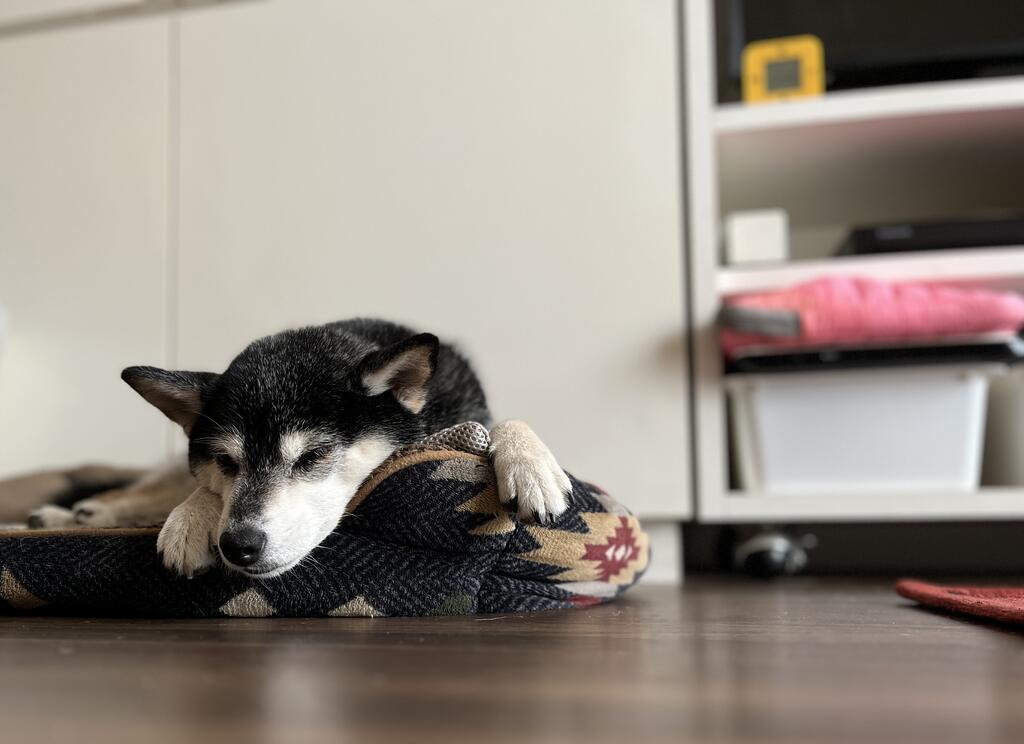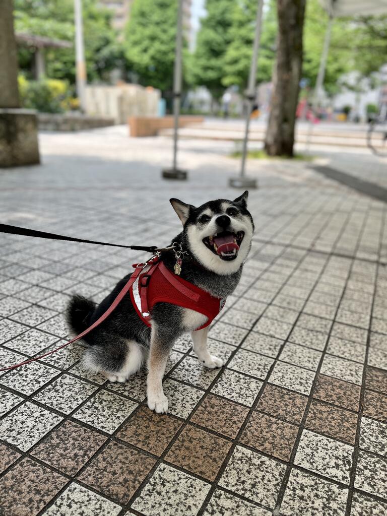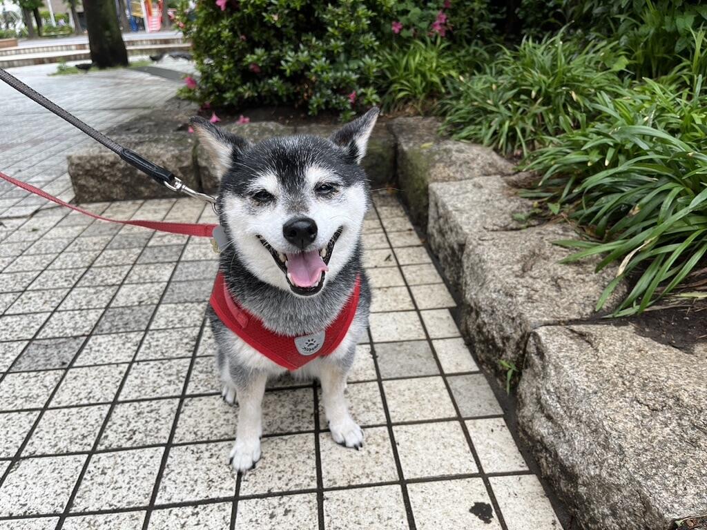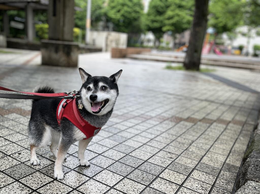 妻は豆柴ジーラと早朝散歩。