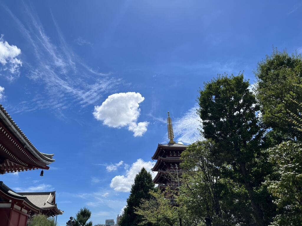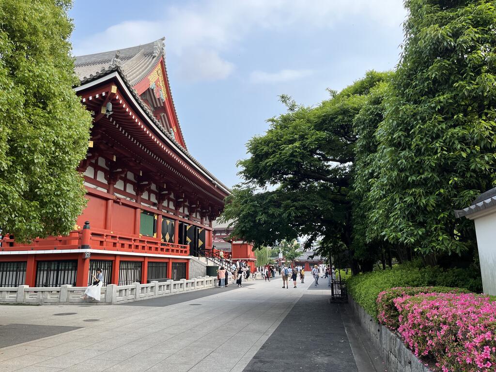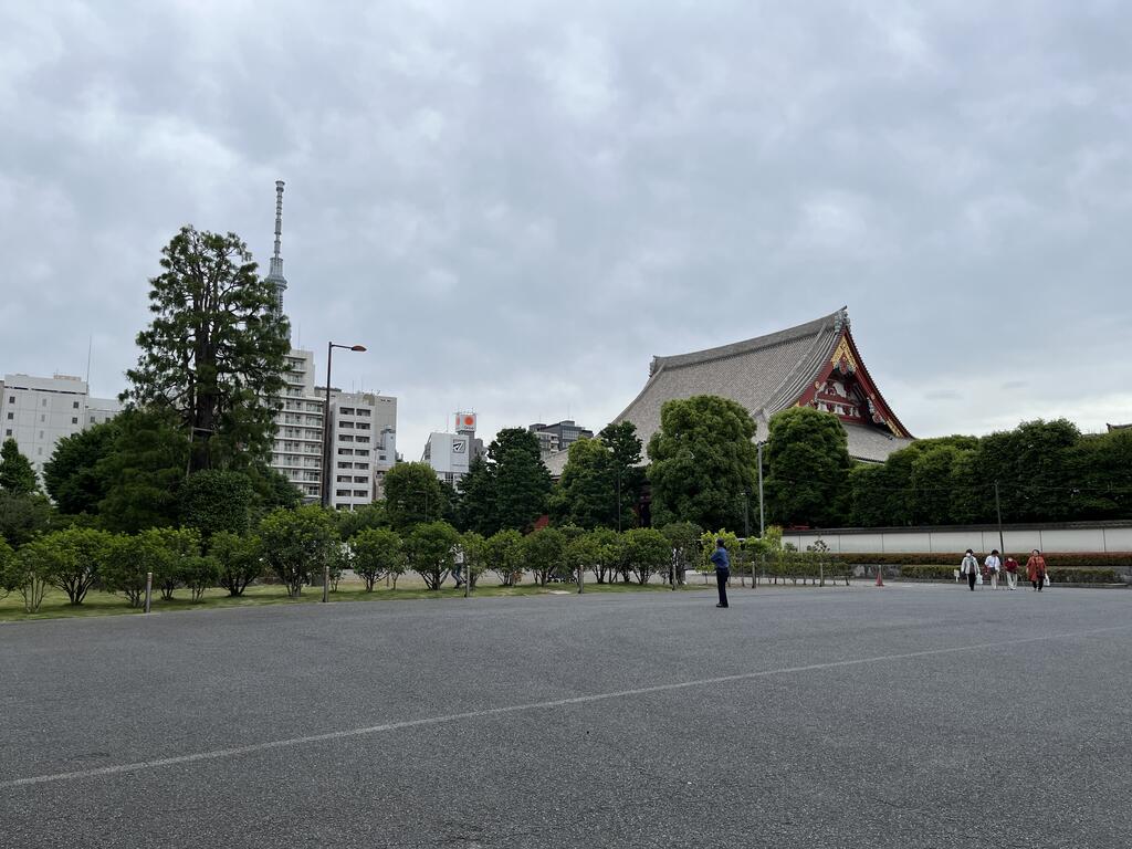 浅草寺境内は日陰で憩う外人多し。