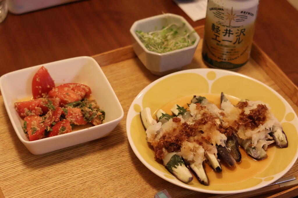 トマトの胡麻和えなどを食す。