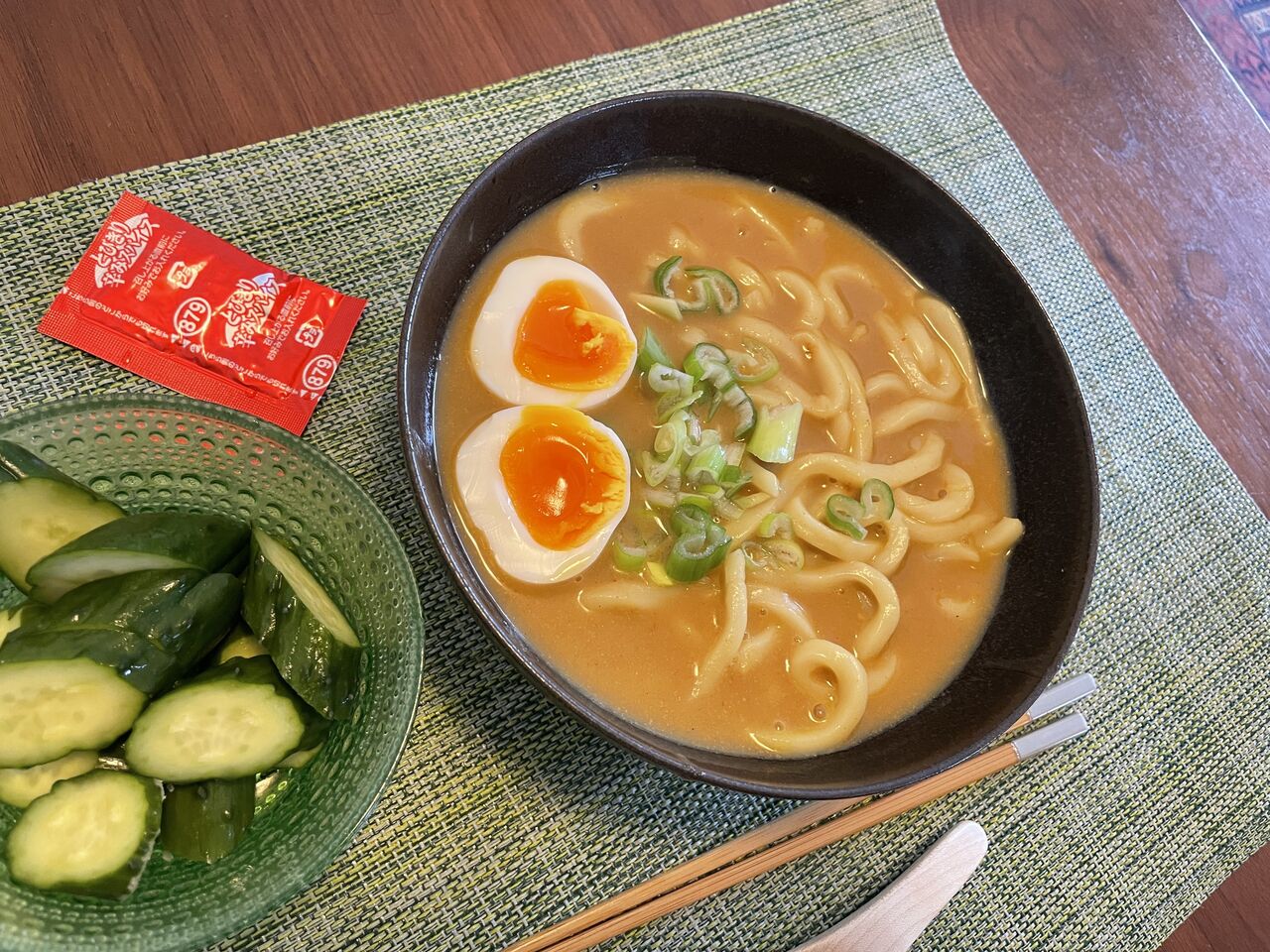 ゆで卵とネギをトッピングして、
